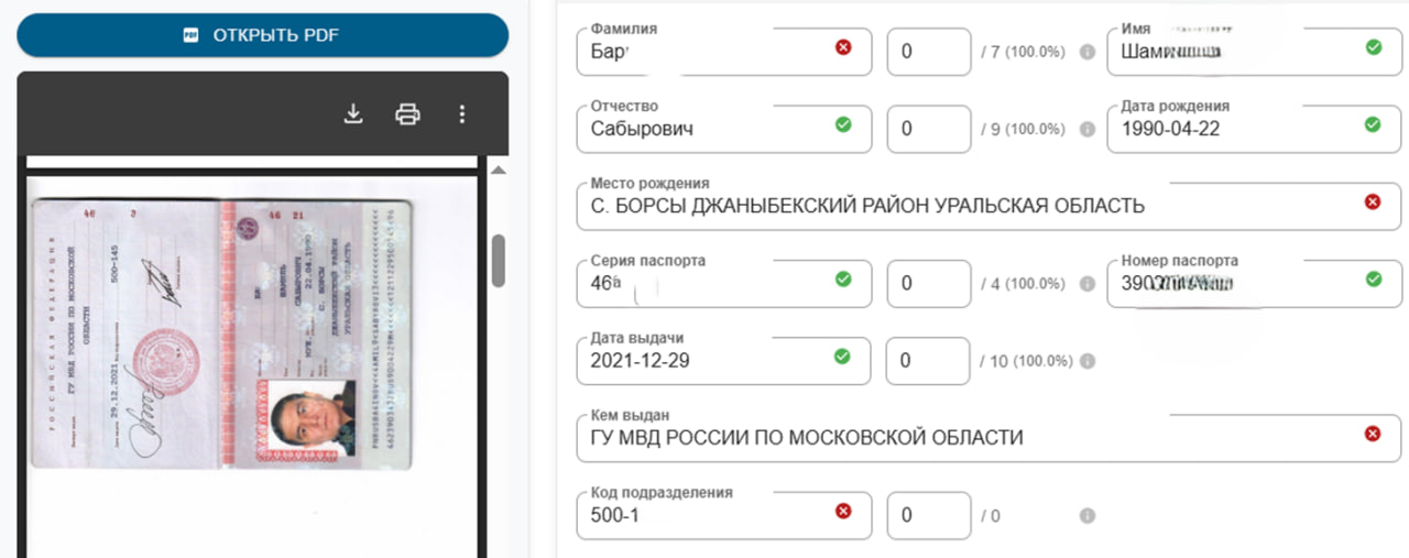 система OCR и валидации документов, автоматически извлекающая, структурирующая и проверяющая персональные данные физических лиц. Ускоряет онбординг, снижает риск ошибок и уменьшает вероятность мошенничества.
